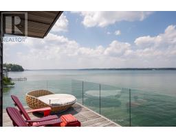 Stunning World-Class Waterfront Estate on Kempenfelt Bay / Lake Simcoe! Privately nestled along one of the most prestigious and coveted roads on Kempenfelt Bay, this extraordinary estate is offered for sale. Gated and masterfully designed, the property showcases the pinnacle of craftsmanship, elegance, and timeless luxury. Envisioned as a true family compound, the estate comprises multiple residences designed for entertaining and privacy: the grand main house, a private apartment, a boathouse, and a cabana. Together, they provide 10 bedrooms, a bunk room accommodating 8, 11 bathrooms, 2 full kitchens, and 3 kitchenettes offering exceptional flexibility for family, friends, and guests. The main residence features a one-bedroom loft with full kitchen and bath, while the rare water lot highlights an Incredible one of a kind boathouse with kitchenette, bedroom/bathroom, living/dining with folding glass doors for indoor/outdoor lakeside living, double slip wet boathouse, permanent dock, extensive decking, remote lifts. Poolside cabana with dramatic fold-away doors continue Outdoor living elevated with frameless glass railings, expansive stonework, covered and uncovered sitting, lounging and dining areas are perfectly positioned for breathtaking sunsets and lake views. Resort-style amenities define the exterior, including a Betz Gunite pool with waterfall, infinity edge, and hot tub, glass-walled terraces, a poolside BBQ pavilion, and a cozy wood-burning fireplace surrounded by intimate seating. Inside, refined details abound: Incredible Chefs Kitchen, reclaimed antique elm hardwood floors, a custom wrought-iron staircase, elegant crown mouldings, four gas fireplaces, and extensive soundproofing for total comfort and privacy. A true one-of-a-kind sanctuary, this world-class waterfront estate must be experienced to be fully appreciated. Presentation, Photo Gallery, Floor Plans In Link. (id:27377)