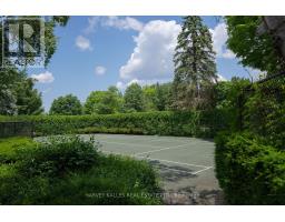 Executive Home in Prestigious Neighbourhood Set on one of the finest oversized corner lots in this iconic and sought-after neighbourhoods!! Architecturally designed residence offers an exceptional blend of privacy and lifestyle. Surrounded by mature trees, lush gardens, and extensive landscaping, the property is framed by a stately cedar hedge and offers a rare sense of seclusion in the heart of the city. The outdoor amenities are second to none, featuring a private tennis court, large swimming pool, cabana, sauna and multiple sitting areas designed for entertaining or quiet relaxation. Inside, the home has been thoughtfully renovated, showcasing a custom chefs kitchen with stainless steel appliances, open-concept living and dining areas, and expansive windows that bring the outdoors in. The family room, anchored by a wood-burning fireplace with flagstone detailing, is warm and inviting. A large solarium room offers sunkin hot tub with walk-out to the pool enhances the connection between indoor and outdoor living. Offering five spacious bedrooms and a fully finished lower level, the home provides versatility for family life and entertaining. The oversized lot also affords views of the lake and neighbourhood park, enhancing the sense of retreat. Conveniently located minutes from downtown, Highway 400, Royal Victoria Hospital, shopping, and city amenities, yet set in a tranquil, country-feeling enclave close to the marina and lake lifestyle, this property represents an extraordinary opportunity to own in one of the areas most prestigious settings. (id:27377)
