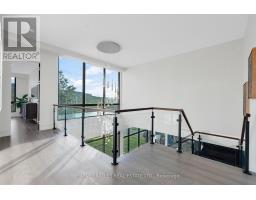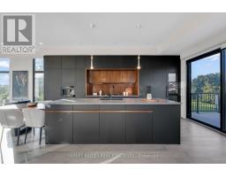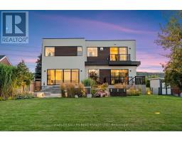 Directly across from the cliff-face of the Niagara Escarpment, in one of Milton's most serene and private settings, sits a newly built contemporary masterpiece designed by award-winning Sensus Design Studio. Resting on a remarkable 60 x 520+ lot backing onto 16 Mile Creek, this home offers a rare blend of modern architecture and countryside tranquility. With no neighbours in front or behind, walls of windows immerse you in nature, while the expansive backyard invites year-round enjoyment whether relaxing in the hot tub, recovering in the cold plunge, gathering around the fire pit, fishing, tobogganing, or even practicing your short game of golf! Inside, 21 ceilings and a floating staircase set a dramatic tone. A formal living room frames escarpment sunsets, while the sleek custom kitchen features high-end Fisher & Paykel appliances. The family room, anchored by a soaring stone fireplace, doubles as a home theatre with built-in projector and surround sound. The primary suite rivals a five-star retreat: a lounge with soaker tub overlooking the backyard, a double-sided fireplace, king-size sleeping area with custom headboard, walk-through closet, and spa-like ensuite. Two additional king-sized bedrooms each feature walk-in closets and lavish ensuites with wet rooms. Smart home features include lighting automation, landscape and irrigation systems, EV charger, and more. A perfect fusion of luxury design and natural beauty, this home is truly one-of-a-kind and must be experienced in person. (id:27377)