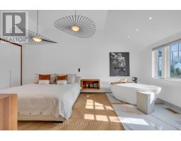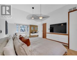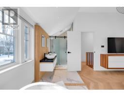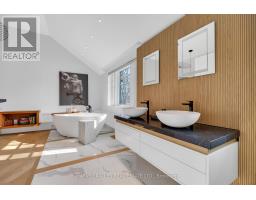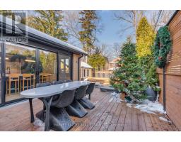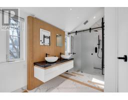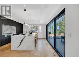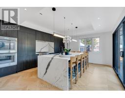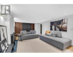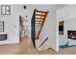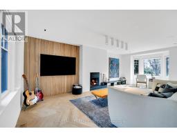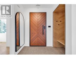 Architecturally striking and filled with natural light, this custom designed home showcases exceptional craftsmanship and warm wood detailing throughout. Fully renovated from the studs, this home blends modern architectural lines with timeless materials, featuring chevron wood floors, cedar accents, recessed trim, and extensive custom millwork. The main level is designed for seamless entertaining and everyday living, with soaring ceilings and expansive sliding glass doors that open to a private dining terrace and outdoor Chef's kitchen, creating a beautiful indoor-outdoor flow. The indoor chef's kitchen is anchored by an oversized island ideal for gathering and entertaining, complimented by integrated appliances, bespoke cabinetry and exceptional storage. Custom built-ins throughout enhance both form and function, while the upper level offers a skylit hallway, impressive ceiling height, and refined architectural detailing. The hotel inspired primary suite includes extensive built-ins and a spa like ensuite with double sinks, rain shower, a stand alone luxury tub and a smart toilet. Two well proportioned secondary bedrooms are thoughtfully positioned and share a Jack- and-Jill washroom, ideal for growing families. The fully finished lower level adds flexible living space with a fireplace, fitness area, cedar sauna with a salt wall, industrial style laundry, and a three piece washroom. A turnkey home where design and livability are perfectly balanced. (id:27377)