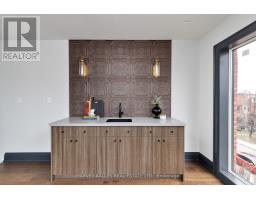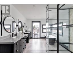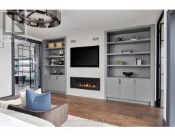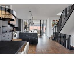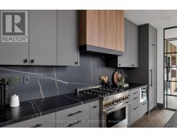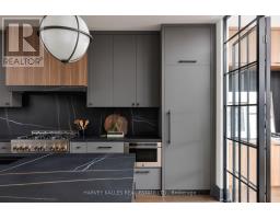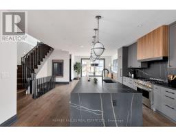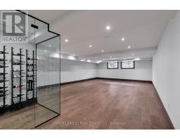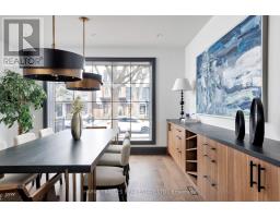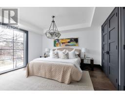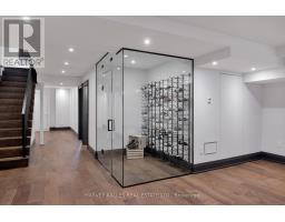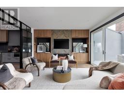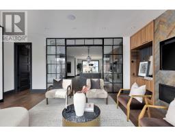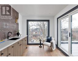 Toronto's take on a New York-inspired industrial soft loft. A rare detached family home offering nearly 4,500 sq ft of living space across four levels, with approximately 3,100 sq ft above grade, set on a 27.98-ft wide lot. Neighbourhood-defining interior design by Glen Peloso.The bright, wide-plank main level features an east-facing dining area flooded with natural light, flowing into a custom chef's kitchen with oversized island, separate built-in refrigerator and freezer, bespoke lighting, and exceptional storage. Factory-inspired glass walls and double doors lead to an elegant family room with fireplace, custom built-ins, and a full wall of glass opening to a large outdoor deck. A rear mudroom with built-in seating and storage adds everyday functionality. Powder room finished with custom New York streetscape wallpaper.The primary retreat occupies the entire third floor, introduced by a dramatic landing with an east-facing sunroom wrapped in floor-to-ceiling windows, complete with coffee station and wet bar. Step out to a city-view observation deck with open eastern exposure. The primary bedroom features abundant natural light, custom built-ins, and fireplace, complemented by a spa-like ensuite and an exceptional walk-in dressing room with centre island, skylight, and extensive shelving.The second floor offers a large bedroom with private 4-pc ensuite, two additional generous bedrooms with balcony access, a full laundry/utility room, and an additional 4-pc bath.The lower level spans approximately 1,200 sq ft, featuring a substantial recreation room, glass-enclosed wine cellar, nanny or guest suite, 4-pc bath, and cantina. Large 2.5-car garage with laneway access. Dual HVAC systems. (id:27377)