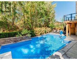 Magnificent one-of-a-kind family home nestled on one of the most sought-after streets in the prestigious Valleys of Thornhill community. Backing onto a tranquil ravine, this designer-decorated residence showcases a stunning saltwater inground pool with a water feature, built-in BBQ, and multiple lounge, seating, and dining areas across an expansive 80-ft-wide backyard oasis. The sun-filled interior boasts 9' main floor ceilings, hardwood floors, pot lights, crown moulding, and elegant upgraded fixtures throughout. Perfect for entertaining, the home offers spacious living and dining areas, a cozy family room, and a gourmet chef's kitchen featuring a butler's pantry, oversized island, Corian counters, tiled backsplash, and top-of-the-line built-in stainless-steel appliances. The large breakfast area walks out to a deck overlooking the private treed backyard. Enjoy convenient garage access through the laundry/mudroom. The luxurious primary retreat features a 5-piece ensuite, walk-in closet, and an adjoining home office or sitting room. Three additional bedrooms each include walk-in closets with custom built-ins. The impressive walk-out basement offers an office, recreation and exercise areas, ample storage, and two washrooms-ideal for use after a swim. Situated close to top-rated schools, 2 community centres, parks, restaurants, shopping, and public transit, this exceptional property blends elegance, comfort, and convenience in one perfect package. (id:27377)