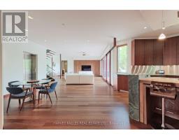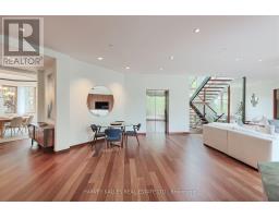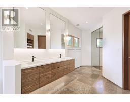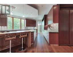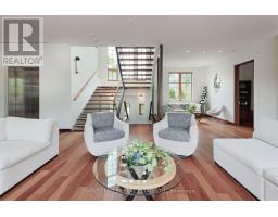 Discover a gem, custom-built as a multi-generational home, offering over 11,000 sq ft of luxurious living space on a rare 125ft double lot at the edge of the Humber Valley in the tree-lined Kingsway neighbourhood. This residence is a statement of contemporary elegance and sophistication, perfect for the discerning family.Inside, experience clean lines and exquisite details that enhance comfortable luxury living, including sound-isolated suites, Jatoba hardwood floors, stunning Persian serpentinite kitchen countertops, and heated stone floors for ultimate comfort.Accessibility is a key feature, with snow melt for the front porch, steps, ramp and driveway, a commercial 4x6 ft elevator, and 4 ft wide hallways to ensure effortless movement throughout the residence.The ground floor features a bright, open-plan living area that seamlessly integrates the chefs kitchen, dining, and living spaces, extending to a partially covered upper deck with a 17ft wide opening. A heated 3-car garage is cleverly positioned at the side of the house.The primary retreat is where luxury meets tranquility, featuring two generous walk-in closets and two ensuites one complete with a massage room and whirlpool tub offering tree-top views. Two additional spacious bedrooms, each with walk-in closets, share a thoughtfully designed bathroom suite with dual sinks, ample storage, and a separate area for added privacy. The oversized fourth bedroom also includes its own ensuite bathroom and walk-in closet, providing comfort and convenience for family or guests.The ground floor bedroom suite with a Juliet balcony offers a perfect retreat for guests.Venture to the finished lower level, where 10+ ft ceilings create a light and airy ambiance.This expansive space features a wide sliding door leading to the lower deck, ideal for entertaining.With multiple entertainment areas, including a stepped home theatre and sprawling park-like backyard, this home is designed for those who appreciate spacious comfort. (id:27377)